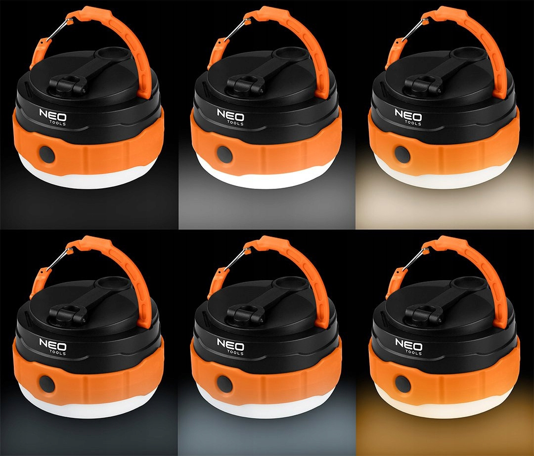 Lampa biwakowa NEO TOOLS oferuje szereg funkcji, które zwiększają jej użyteczność: