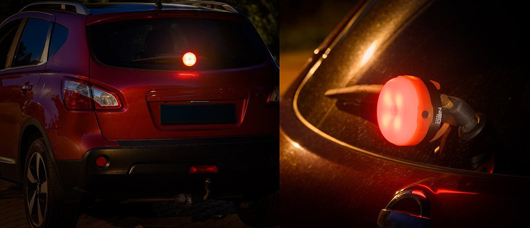 ☑️Czerwone światło: możliwość aktywacji czerwonego światła (dwuklik) oraz trybu strobe.